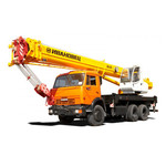 Кран автомобильный КС - 45717 К-1 грузоподъемностью 25 тонн смонтирован на шасси автомобиля КАМАЗ 55111. Привод механизмов крана - гидравлический от насоса , приводимого в действие двигателем шасси. Стрела автокрана телескопическая трехсекционная.